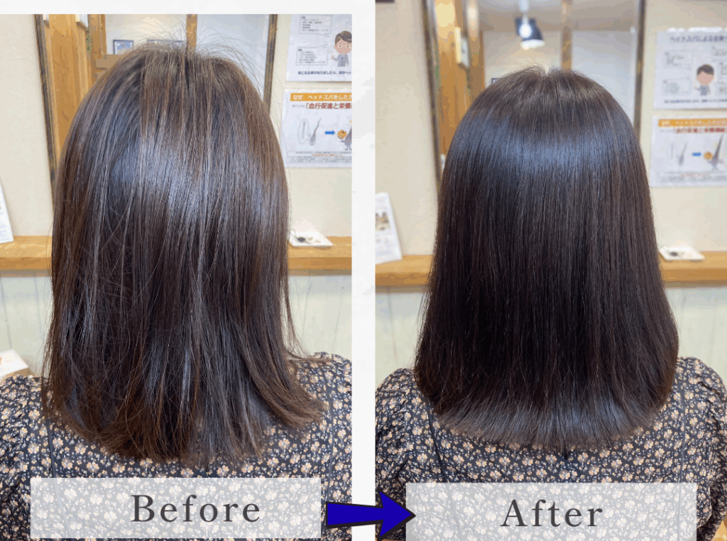 髪質改善×ヘッドスパで根元からハリ・コシを与え、自然なボリュームを出すことが可能です。元の太さ以上にはなりませんが、エイジングによる細毛の進行は遅らせることは可能です。