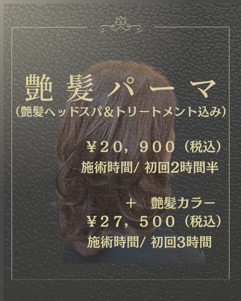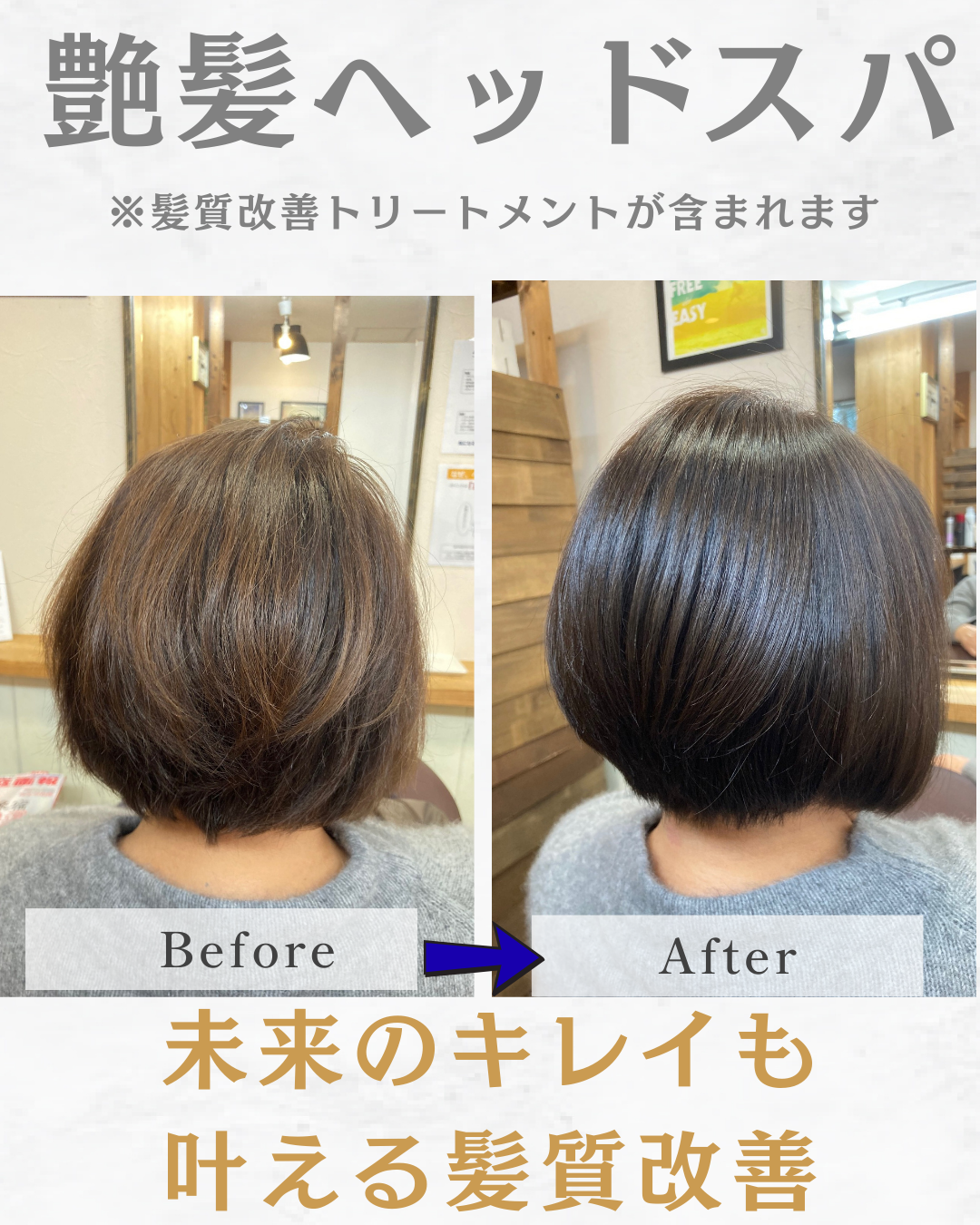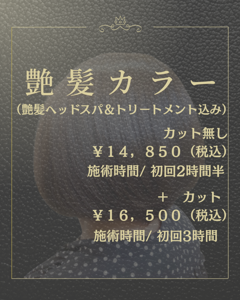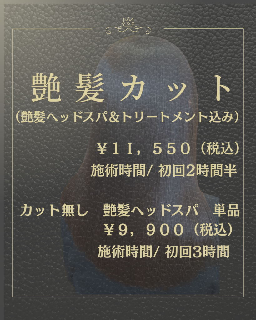 全メニューに「艶髪ヘッドスパ」を含んでおります。