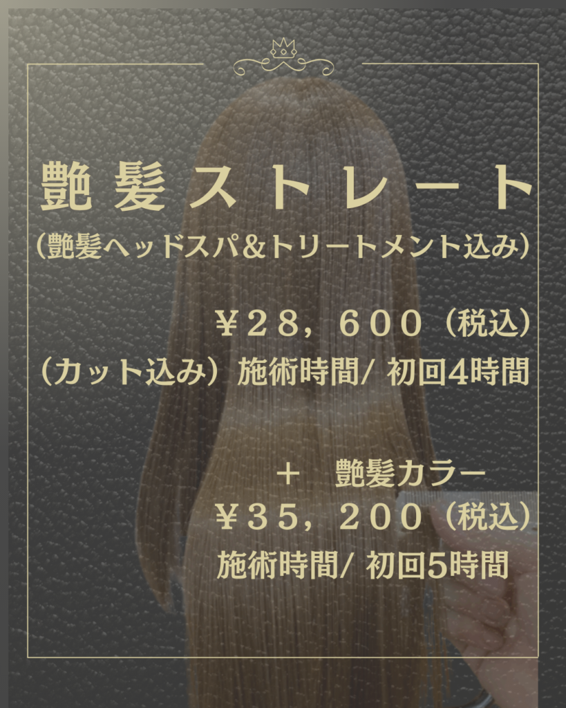 最終受付時間/艶髪ストレート初回 15:00 通常 15:30 /艶髪ストレート+カラー 初回 13:30 通常 14:00