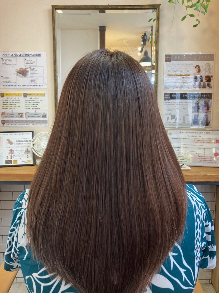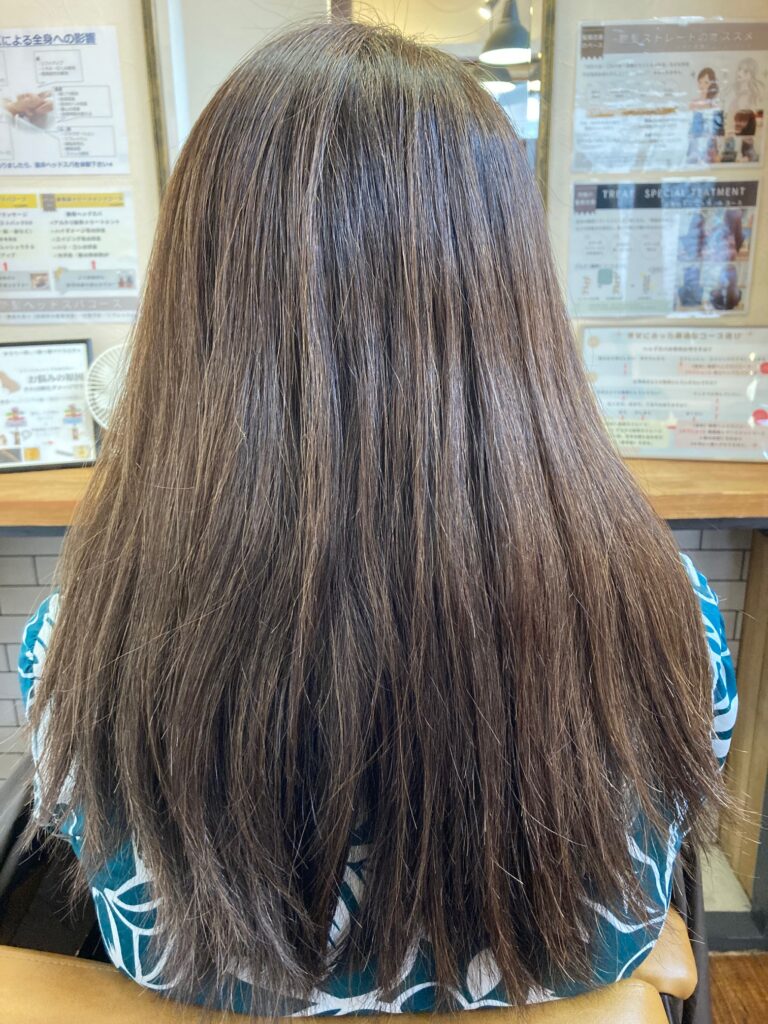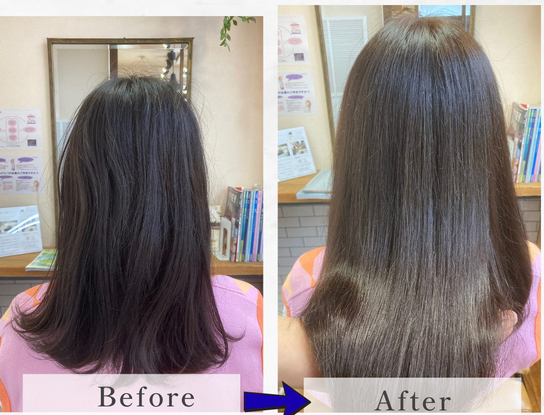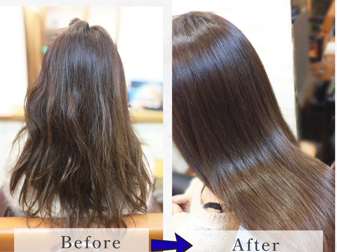 髪の状態にもよりますが、施術後、約1〜2か月はツヤや手触りを実感できます。 ダメージの酷い状態ですと、まずあそこを目指していきます。ホームケアでさらに長持ちします。 髪にとって良くないことを止め、いいことを続ければ髪の状態は改善されます。